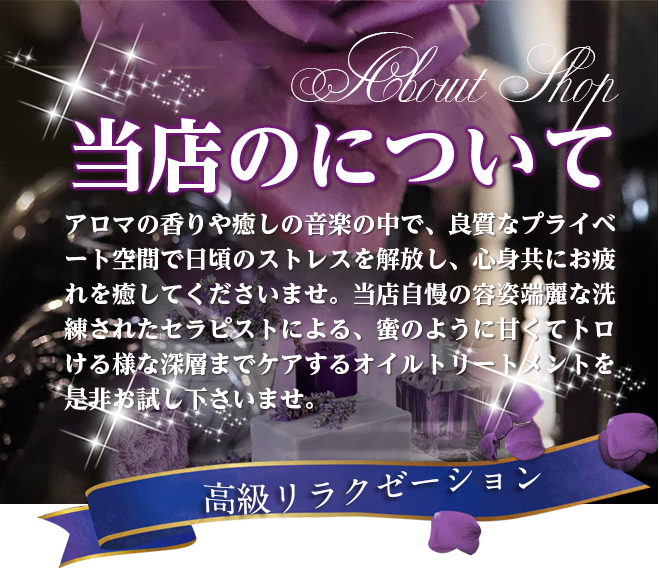 ご愛顧のお客様に感謝の気持ちを込めて、様々なお得な特典キャンペーンをご用意しております。疲れを当店でほぐしましょう!当店は洗練された美人セラピストのみ在籍中!どうぞ、ご安心してご利用くださいませ!
